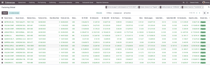 Procesar correctamente la redención de facturas ya cobradas por el fondo Cordada, asegurando que los documentos financiados se liberen formalmente tras ser pagados por el deudor.